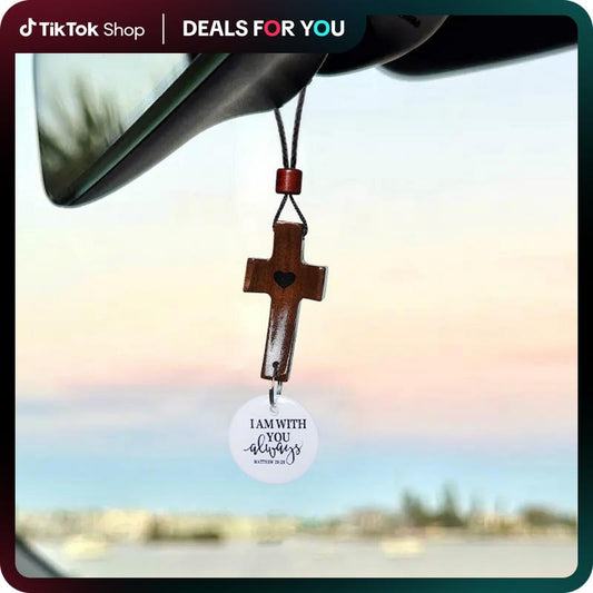 Bible Verse Car Rearview Hanging Cross Ornament, Car Rearview Mirror Cross Pendant, Christian Accessories, Wooden Cross Creative Gift for Dad 【Tiktokshopbacktoschool】